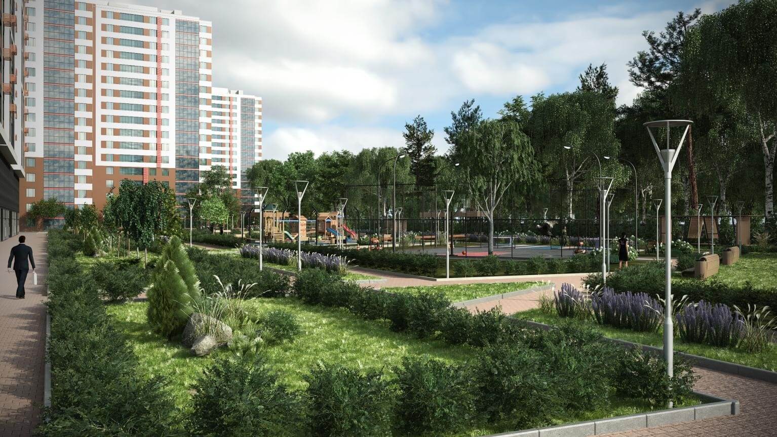 На участке предусмотрено размещение комплекса элементов благоустройства: детские площадки, физкультурные площадки, обустройство пешеходных дорожек, озеленение территории, а также закольцованная пешеходная аллея.