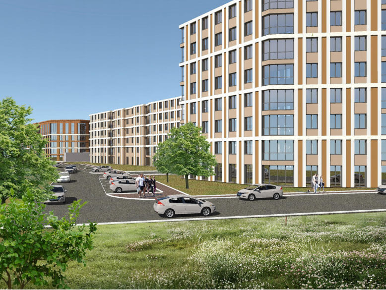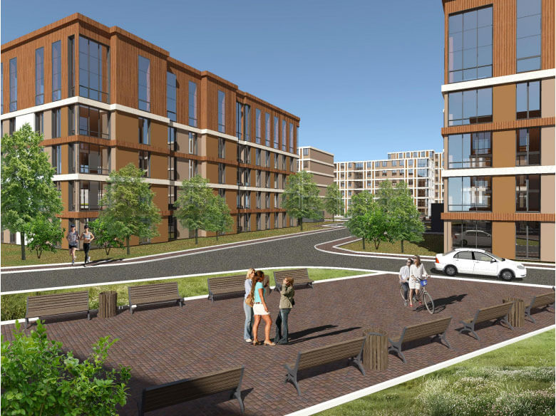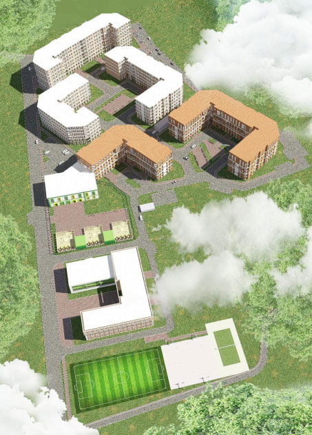 Пяти многоквартирных домов переменной этажности (4-6-8 этажей). В двух домах на первом этаже предусмотрены помещения социально-бытового обслуживания, на территории планируется встроено-пристроенный детский сад и подземный паркинг и физкультурно-оздоровительный комплекс. .