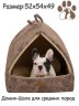 Размер домика ширина 45, глубина 41,высота 40, подушка 44х42. Вы видели уже много разных лежаков и домиков и хотите купить что-то комфортное и необыкновенное? Вам стоит обратить свое внимание на домик-трансформер Шале с удобной ручкой. . Этот домик предназначен для более малых пород. У домика есть застежка - молния, поэтому его легко разобрать и убрать в шкаф и так же легко собрать для питомца, установив стенки и застегнув молнию.